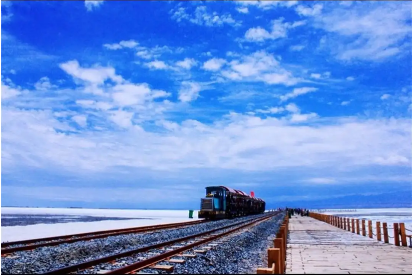 随着茶卡盐湖旅游资源的深度开发,青海茶卡盐湖风景区利用盐湖工业遗产运盐铁轨,打造了茶卡盐湖旅游观光小火车项目。