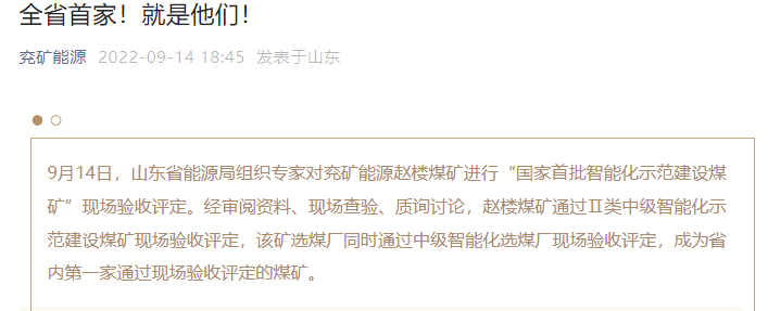 这是山东省首家通过国家建设验收的智能化示范煤矿