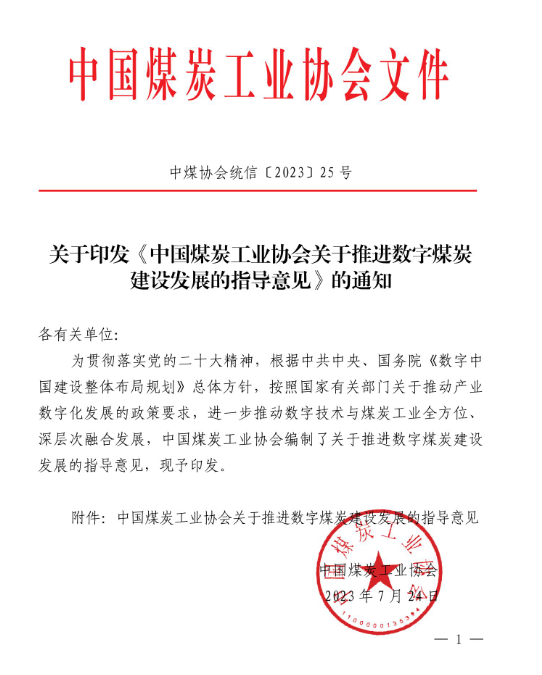 关于印发《中国煤炭工业协会关于推进数字煤炭建设发展的指导意见》的通知