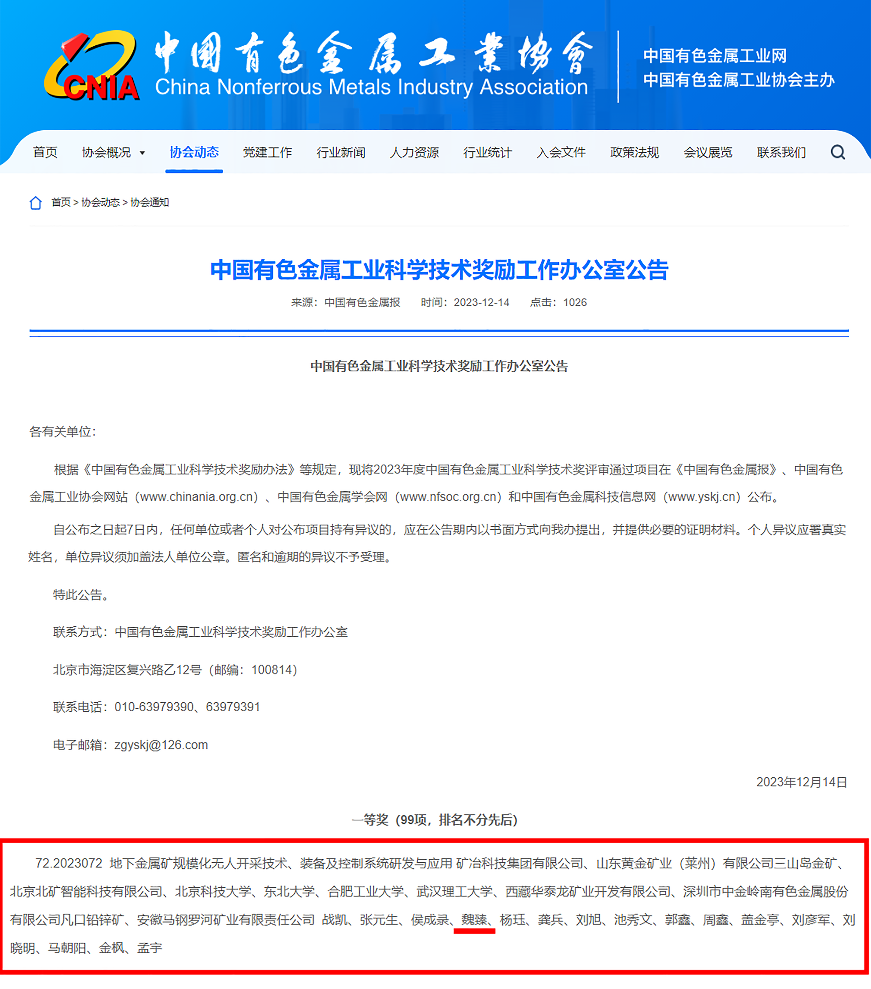 【概要描述】 近日,中国有色金属工业协会公布了2023年度“中国有色金属工业科学技术奖”获奖信息。由工大乐鱼主要参与研制的“地下金属矿规模化无人开采技术、装备及控制系统研发与应用”项目荣获一等奖。