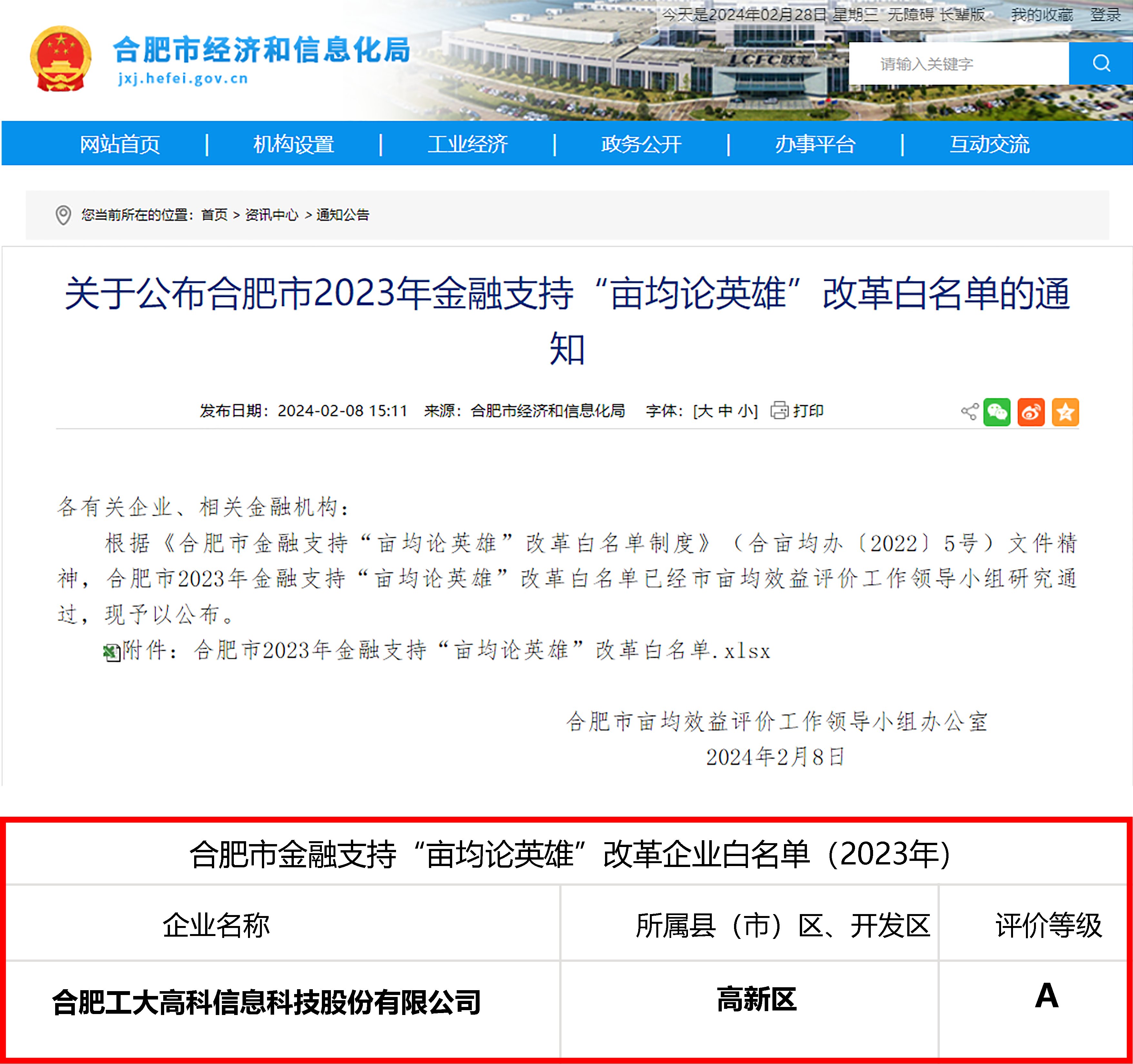 合肥市“亩均论英雄”改革白名单来了!工大乐鱼(688367.SH)上榜A类企业!