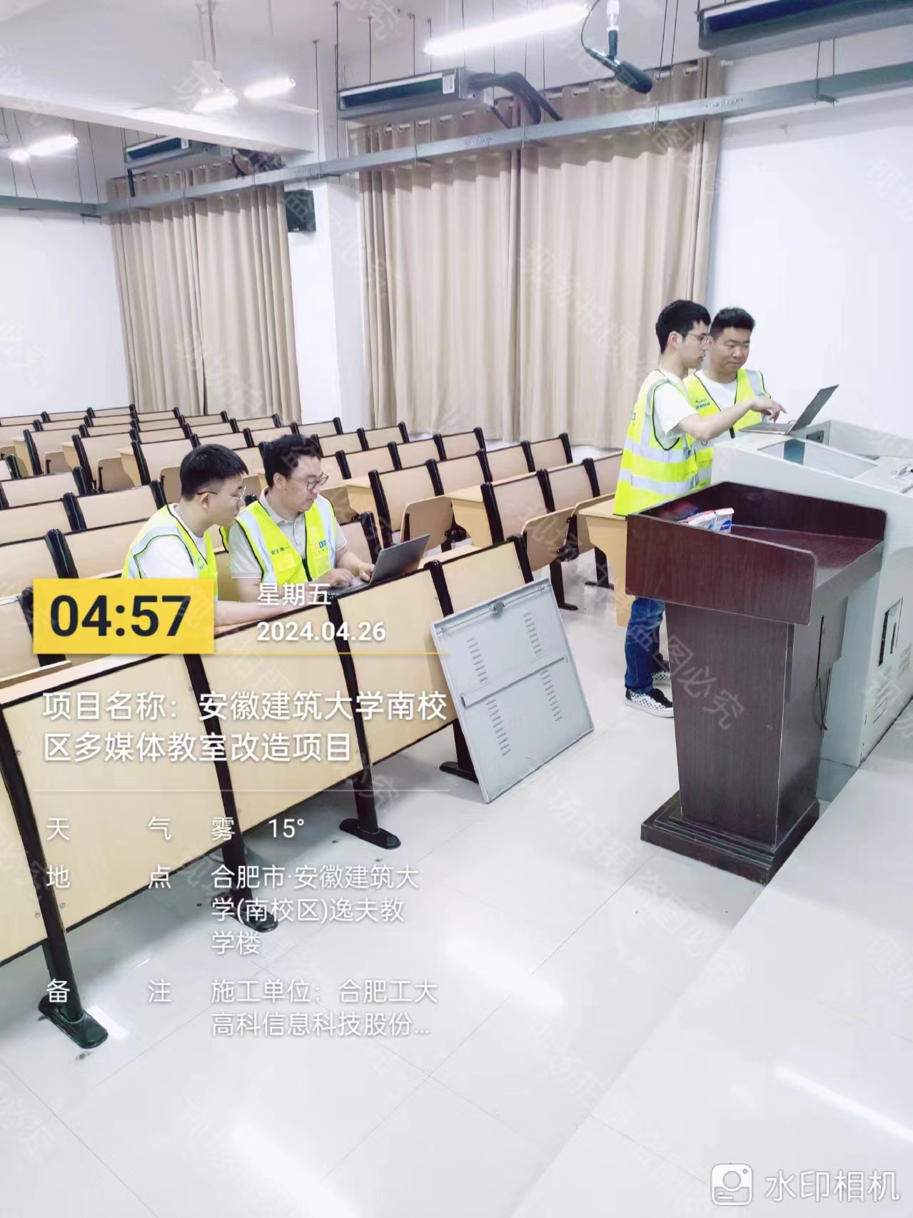 马上又要迎来五一小长假了。项目组团队商定,毅然决定牺牲个人休息时间,采取夜间施工轮班制度,流程化作业,加快推进项目进度,高标准建设、高效率推进,将项目工期压缩至两个月。同时制定应急预案,保障项目有序推进,平稳实施,确保项目如期完成,不影响后续教学任务。