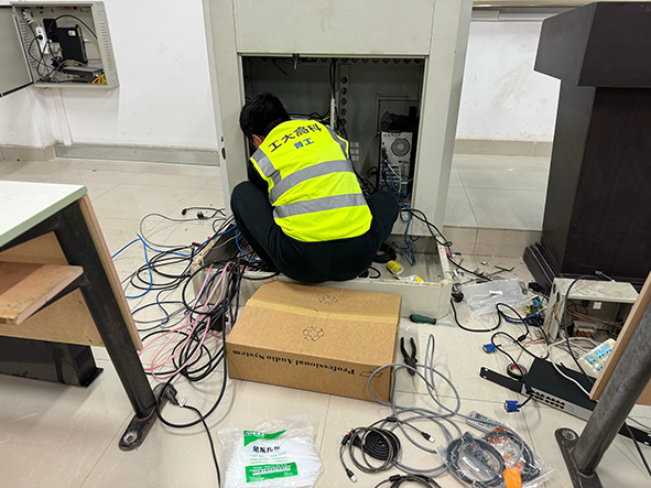 因本次项目施工地点处于教学楼,白天承担着教学任务,无法大面积开展实施作业,最初的实施方案沟通中,业主只允许利用中午及课余时间进行施工,同时需保证当天施工的教室不得影响后续正常教学任务。经测算,这样将造成整体工期超过半年有余。自项目中标后,项目组人员便开始倒排计划,进入紧张的施工阶段。