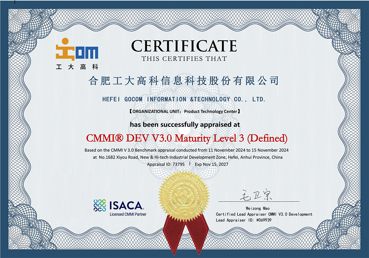 CMMI作为全球公认的软件研发和项目管理能力评估标准,其认证过程严格全面,能够有效评估企业的研发流程成熟度和服务交付能力。工大乐鱼在此次通过CMMI3级认证,意味着工大乐鱼在软件产品研发、项目管理、过程管理、量化管理和质量管理等方面专业能力和严谨态度。